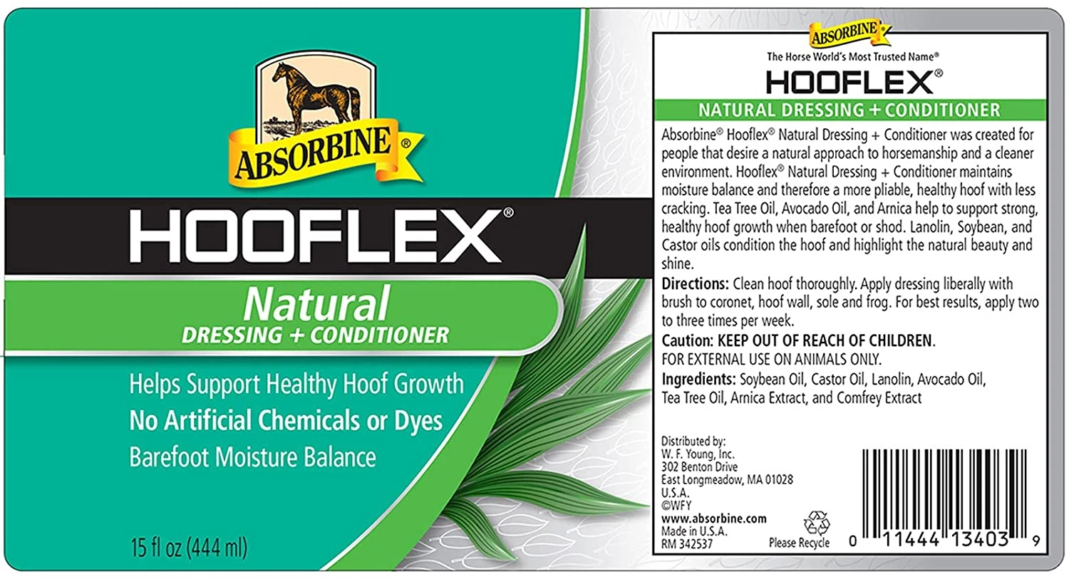 Made with herbal ingredients such as tea tree oil, arnica, comfrey, and avocado oil, Hooflex® Natural Dressing and Conditioner is an all-natural hoof care alternative that’s known to help support shiny, healthy hooves and maintain the hoof’s moisture balance. 15oz Jar with Brush.