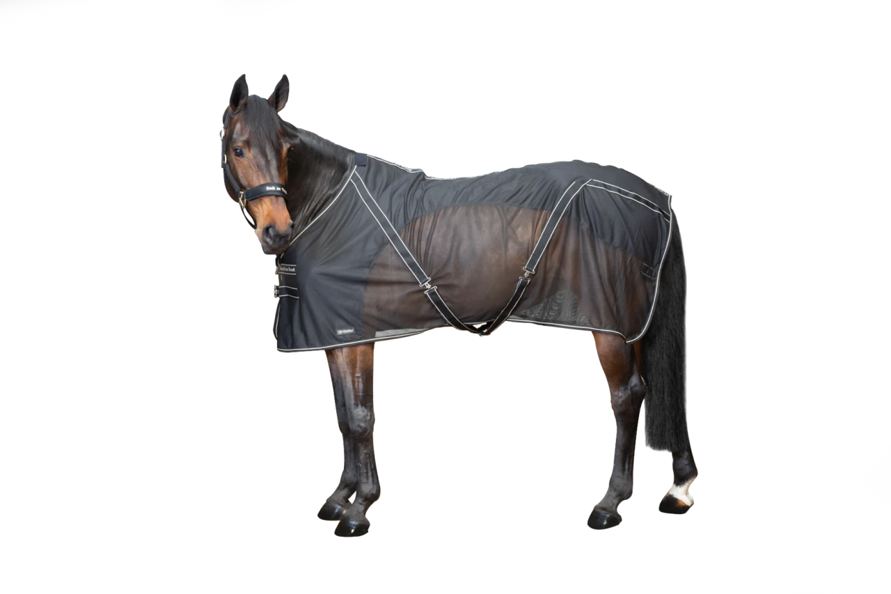 Sienna is an airy mesh cover designed and shaped to minimize pressure over large muscle groups. Perfect for hot days or as a travel blanket for your horse!