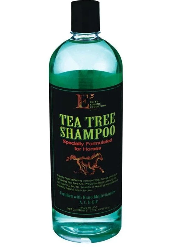 The E3 Tea Tree Shampoo is a concentrated shampoo specially formulated for horses containing Tea Tree Oil. It is a gentle deep cleaner and assists in keeping hair soft while restoring the natural luster to the coat. It is fortified with Nano MultiVitamins A, C, E & F. This helps prevent inflammation and aids in the healing process.
