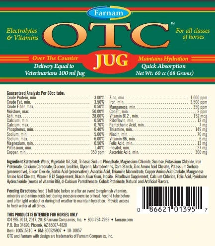 Your horse relies on you to provide him what he needs when he needs it. After a tough workout or competition, your horse loses vital minerals and could use additional support. OTC JUG replenishes vitamins, minerals and amino acids lost during excessive exercise or heat. Can also be used pre- or post-workout to maintain hydration.