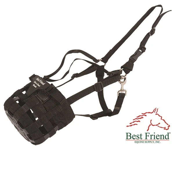 Best Friend® Deluxe Muzzle is a combination grazing muzzle and breakaway halter. Utilizes a side release buckle as its’ breakaway feature. Comes with a spare buckle that can be easily attached in the field. Available in black only.