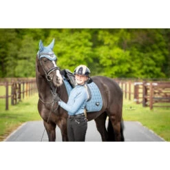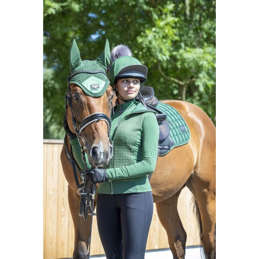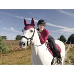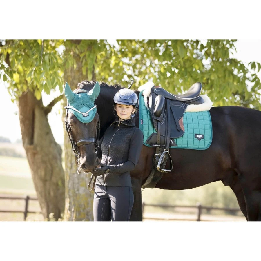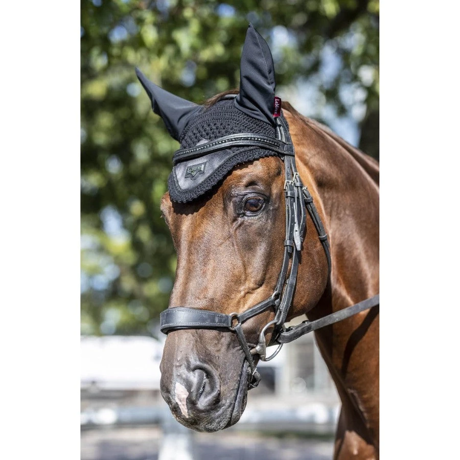 Sporting the signature LeMieux Loire embossed metal motif these luxurious fly hoods are a stylish addition to the collection. Beautifully made from three-way hand knitted crochet with a luxurious satin fabric front piece and soft stretch Lycra ears.