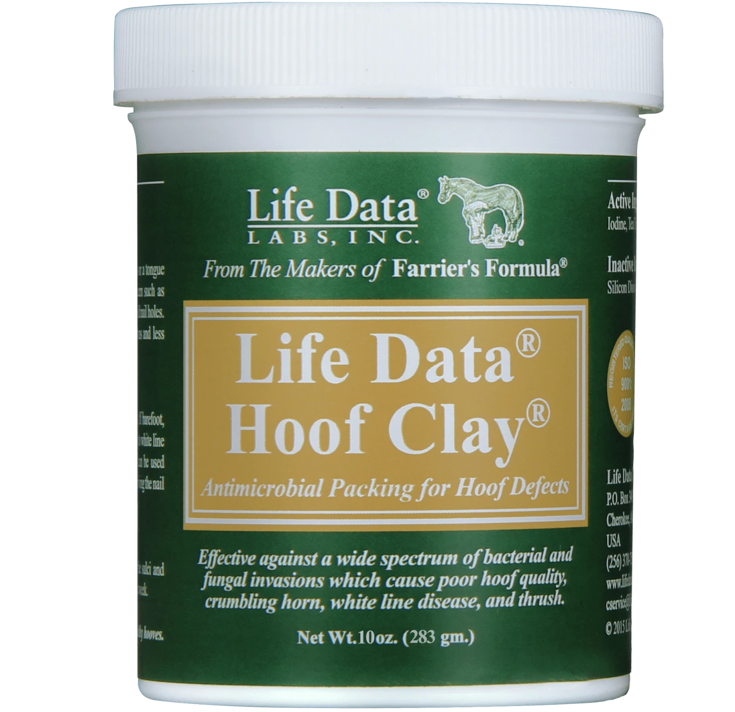 Barefoot horses: Hoof should be dry and clean before application. Apply directly to white line area and into any hoof wall defects. Re-apply twice per week. Shod horses: Hoof should be dry and clean before application. Pull shoes and apply directly to white line area and into any hoof wall defects. Re-apply at each shoe reset. Life Data® Hoof Clay can be used routinely under shoes as a White Line Disease preventative. It is acceptable to drive nails through the Hoof Clay and into the hoof wall.