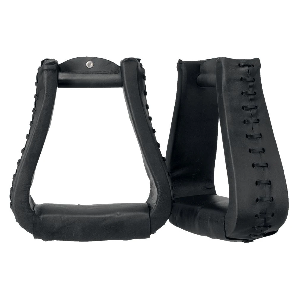 These stirrups are made of quality leather and will accommodate most overboots, hunting/hiking, or insulated boots. Leather tread plate gives added traction in wet conditions. Inside measurements are 6″ wide x 3″ deep x 6″ tall. 3″ neck. These stirrups are not intended for people wearing regular boots.