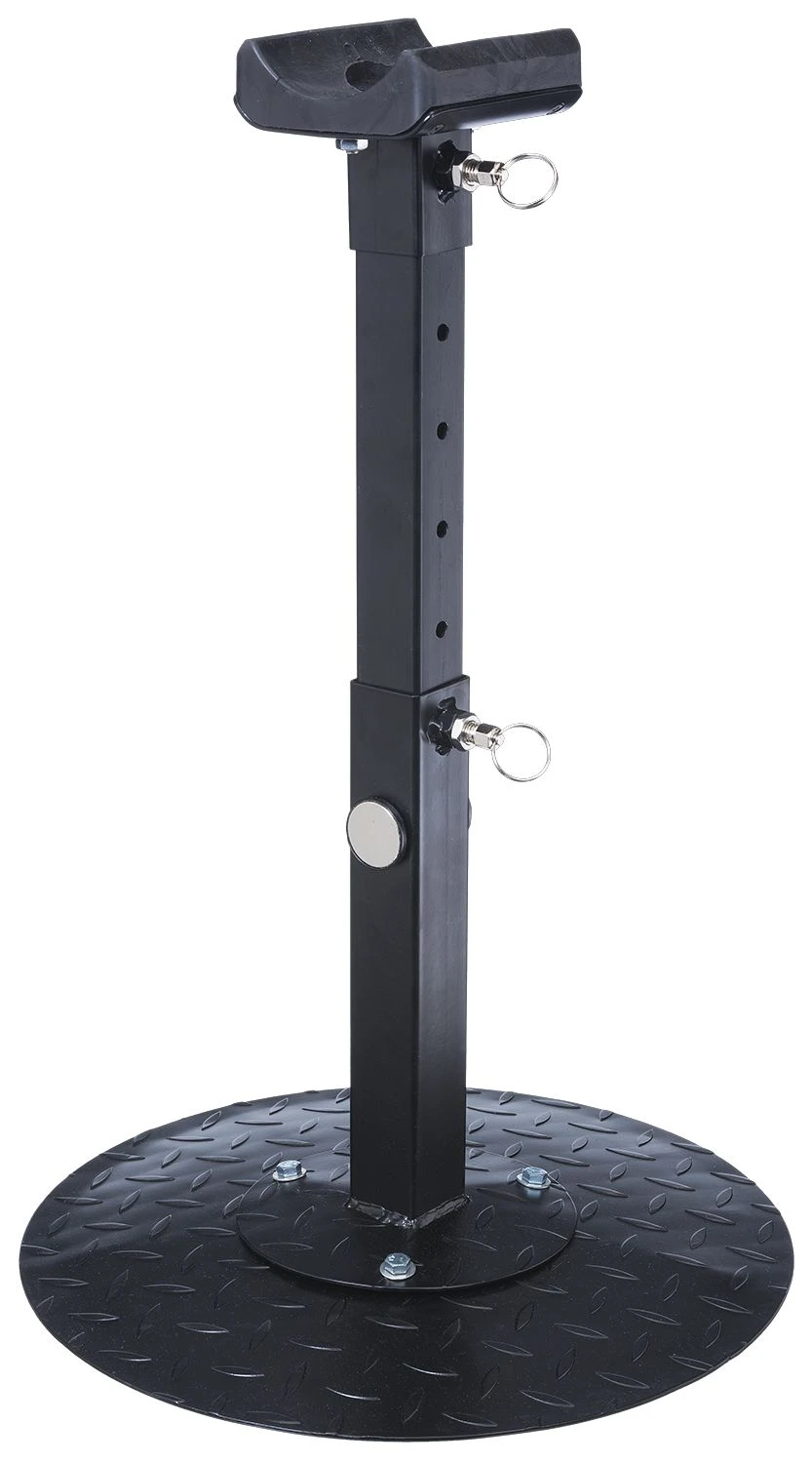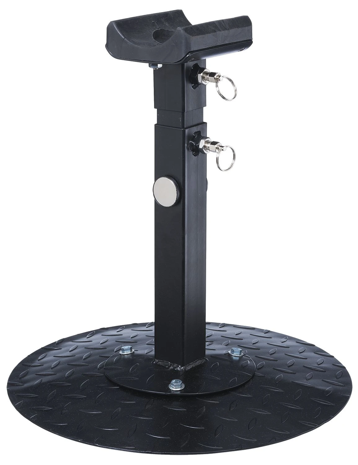 Takes the weight of the horse, saving the farrierÂ’s back! Adjustable farrier stand is fully adjustable to accommodate any height horse. Use the cradle for holding the hoof while trimming and shoeing, then drop the cradle down so post can be used for finish rasping or fitting correct shoe size. Works on front and hind legs. Includes two strong magnets to keep your tools close at hand.
