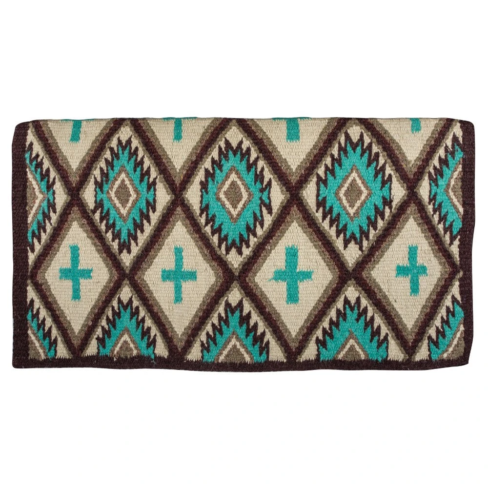 The TuffRider San Angelo Western Woven Saddle Blanket is made with a beautiful combination of turquoise, tan and brown in a traditional western design. Available in size 34×38, this woven western saddle blanket will take you to through Texas and beyond.