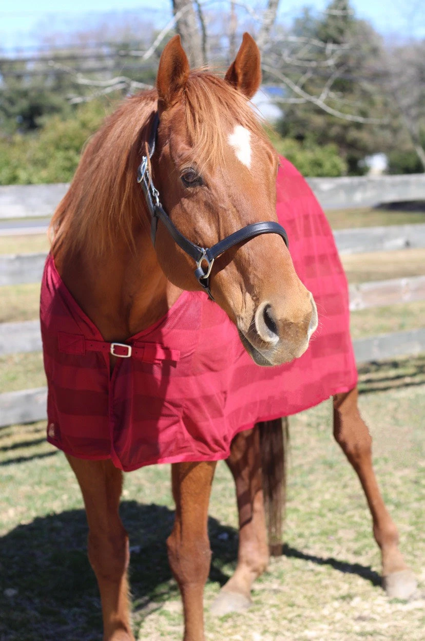 Keeping the pesky flies away during the summer is important for your horse’s health and comfort. The TuffRider Scrim Sheet is perfect for storing in your trailer for those long, hot show days for between classes or to drape over your horse for some sunny trail rides. With UV protection, your horse will have protection from the sun’s intense rays. Easy to secure chest buckles make for smooth on/off. Mesh material with stretchy panels and fleece lined wither patch make for undeniable comfort for your horse.